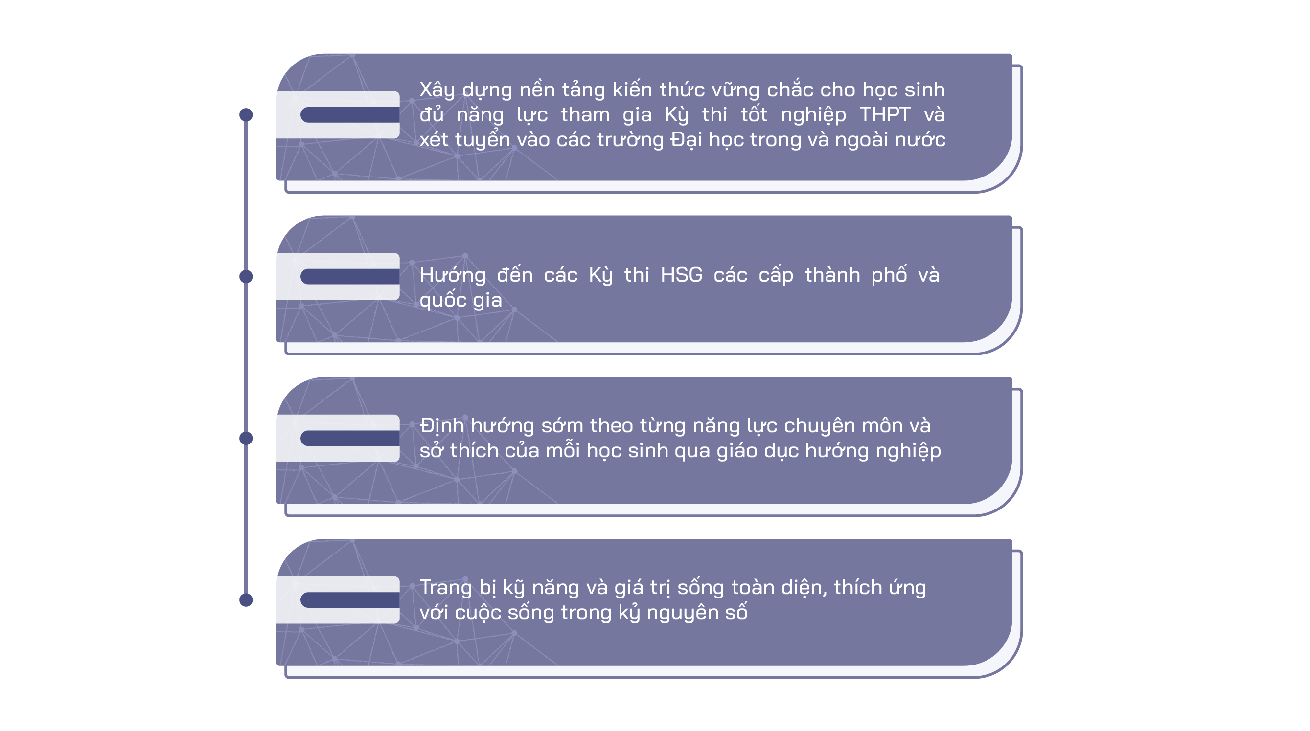 Các môn học mang tính ứng dụng thực tiễn: Ngoài các môn học cơ bản, học sinh được học thêm các môn như Internet of Things, Khám phá khoa học, Kỹ năng sống, STEM...