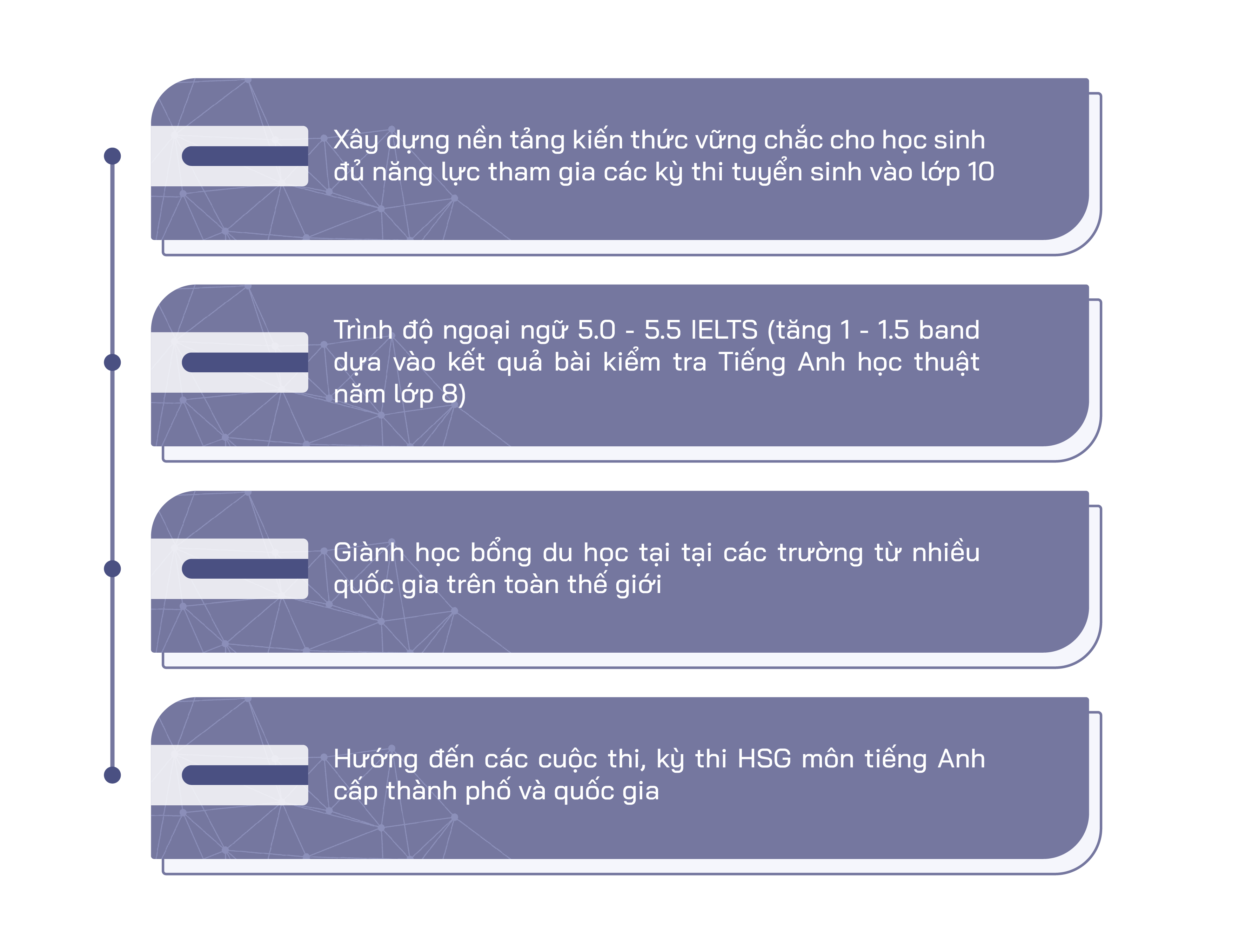 Mục tiêu đầu ra đáp ứng nguyện vọng xét tuyển chuyển cấp hoặc du học học bổng.