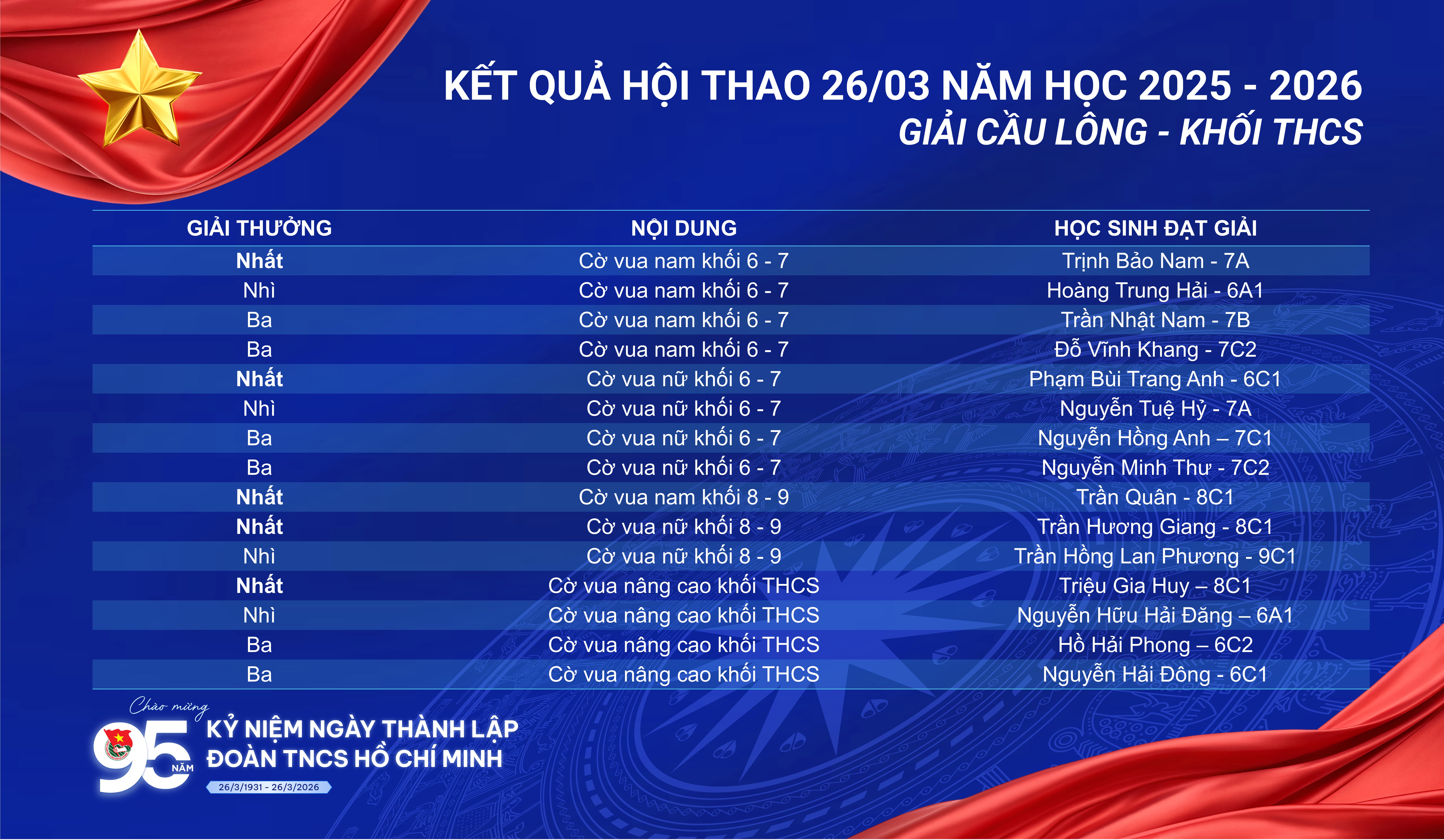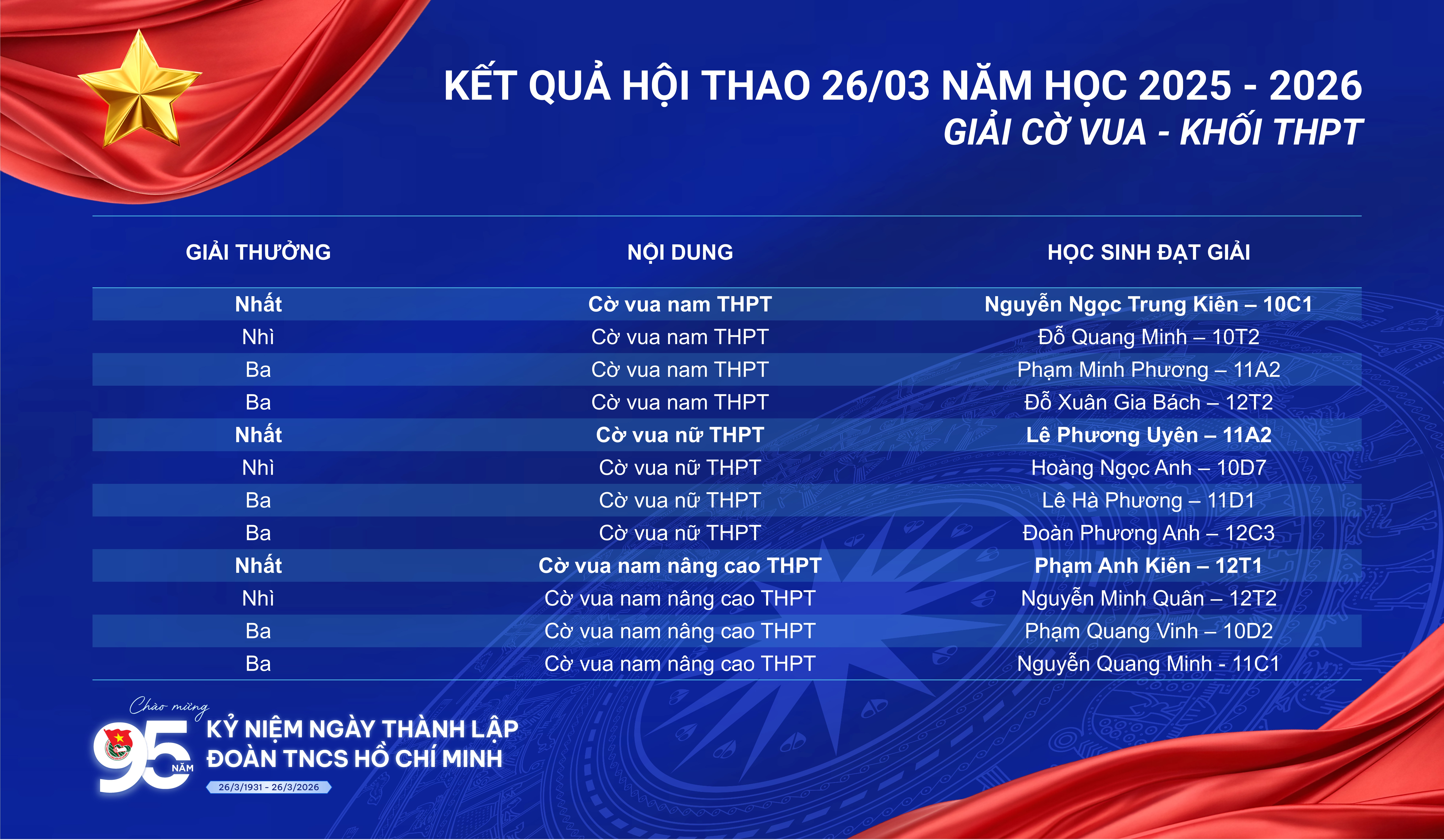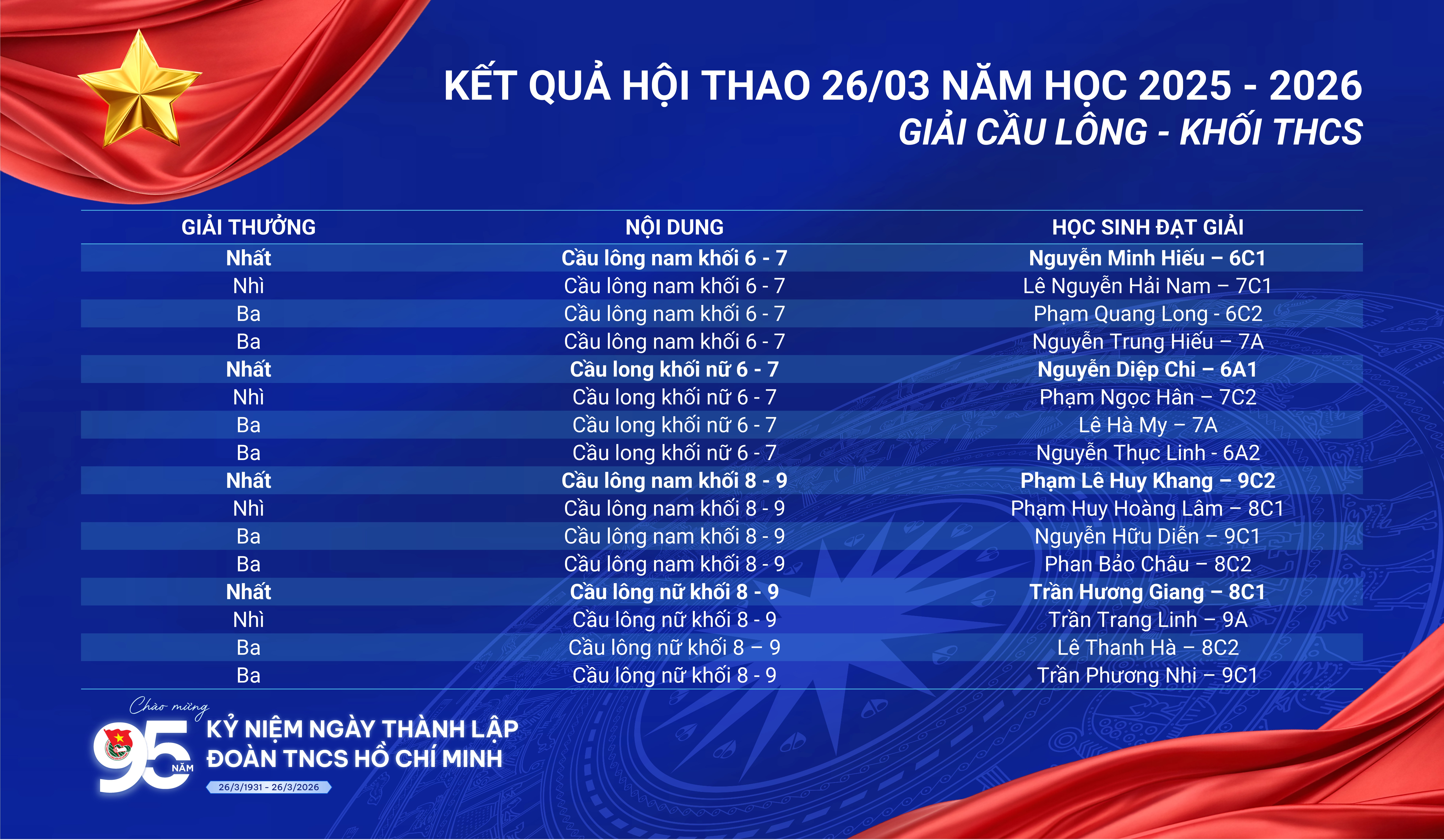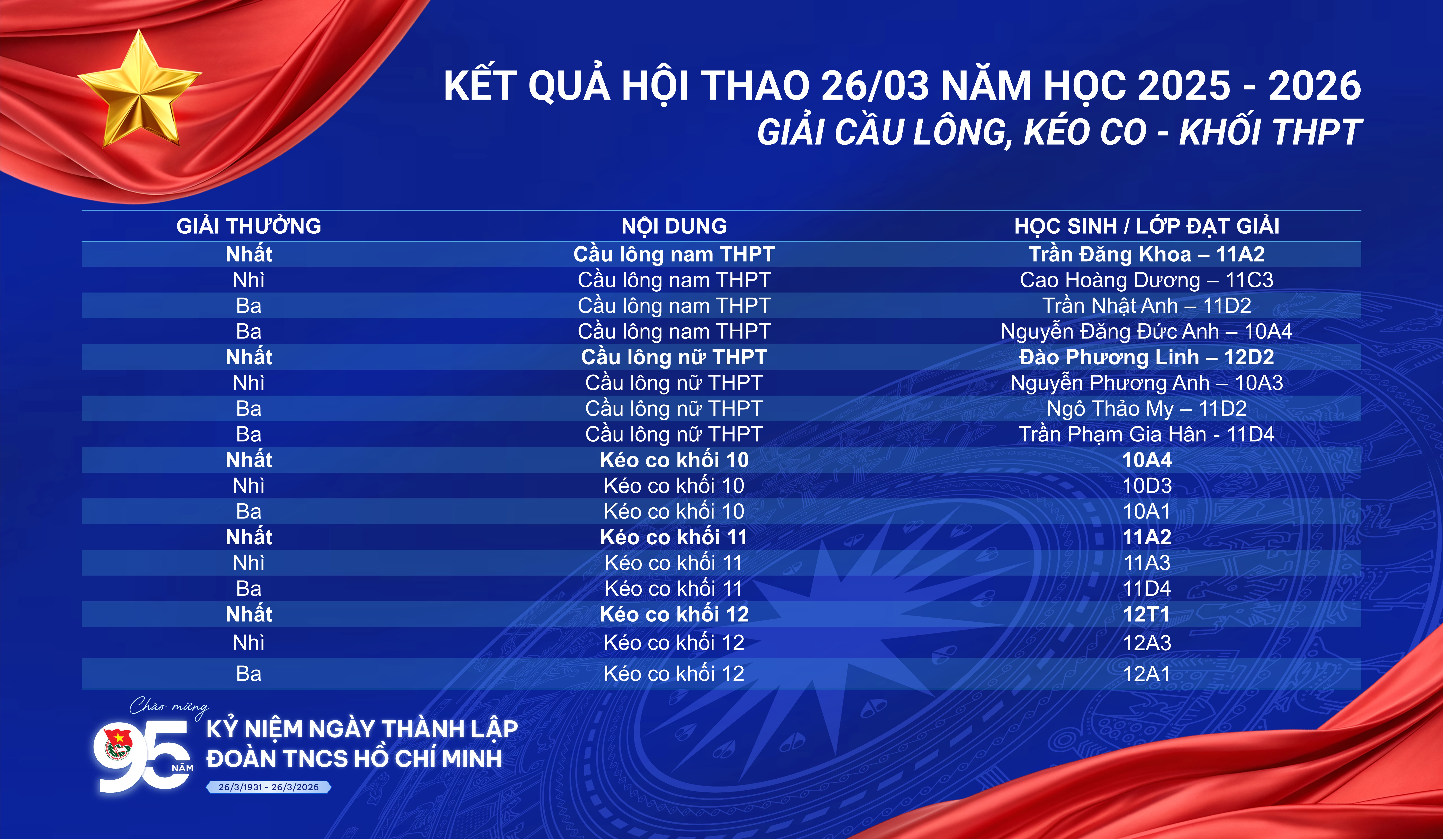 Hội thao 26/3 khép lại nhưng tinh thần thể thao, sự nhiệt huyết và những kỷ niệm đẹp chắc chắn sẽ còn lan tỏa mạnh mẽ trong toàn trường. Đây sẽ là động lực để các em học sinh tiếp tục rèn luyện, phát triển toàn diện cả về thể chất và tinh thần trong thời gian tới.