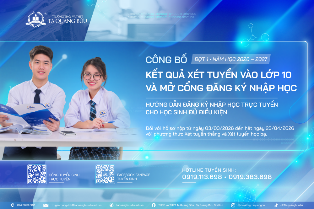 Hội đồng Tuyển sinh Trường THCS và THPT Tạ Quang Bửu thông báo Kết quả xét tuyển ĐỢT 1 (Xét tuyển thẳng/xét tuyển học bạ) đối với các học sinh nộp hồ sơ từ ngày 03/03/2026 đến hết ngày 23/04/2026 như sau: