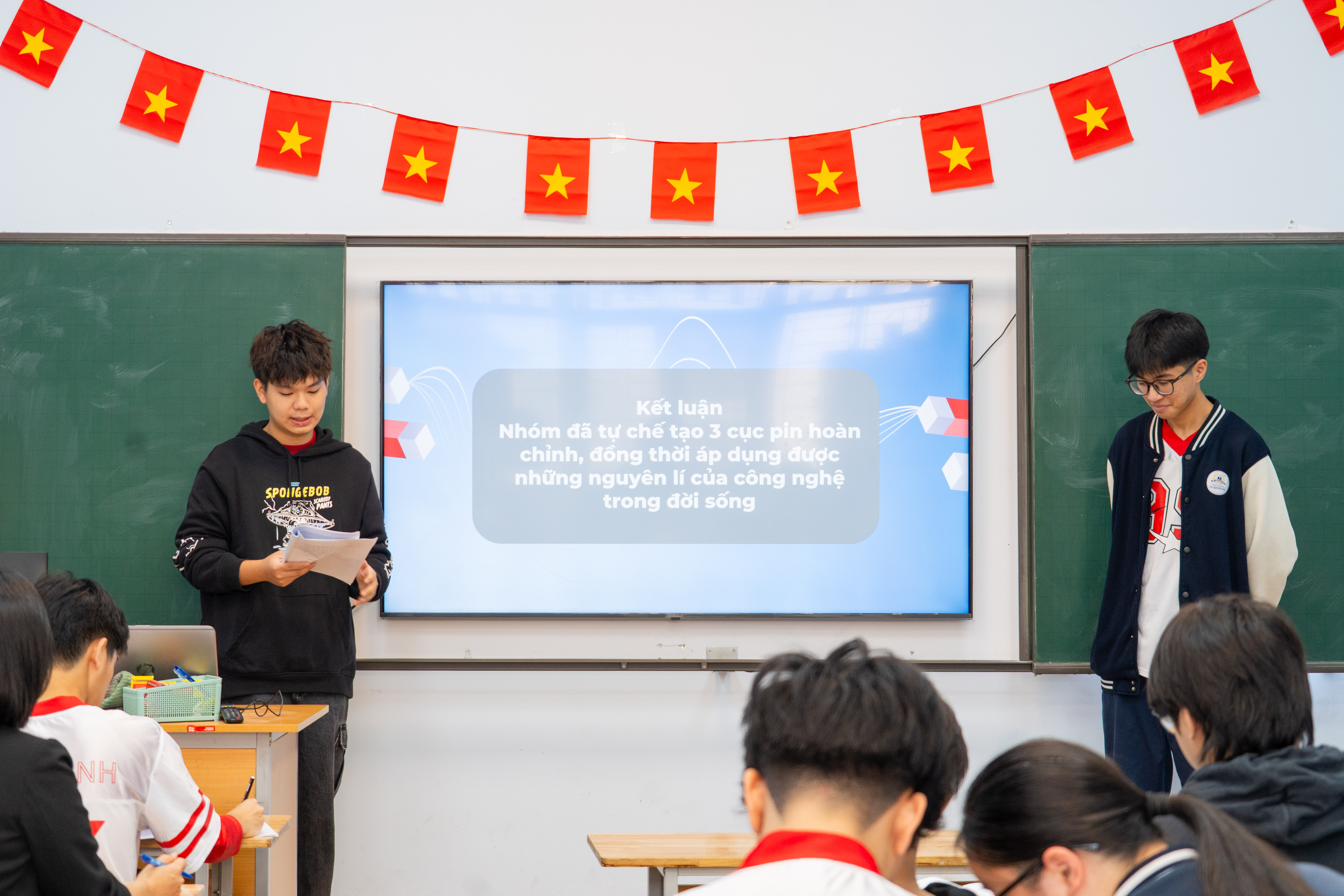 Khi bước vào phần báo cáo, giáo viên nêu rõ yêu cầu: mỗi nhóm có 7 phút để trình bày, tập trung vào điểm khác biệt trong quy trình chế tạo, lý giải vì sao sản phẩm đạt hoặc chưa đạt thông số mong muốn, đồng thời đề xuất giải pháp cải thiện. Các nhóm còn lại phải đưa ra ít nhất một ý kiến phản biện hoặc câu hỏi dành cho nhóm trình bày. Nhờ vậy, không khí lớp học trở nên sôi nổi, giàu tính học thuật; học sinh học được cách lắng nghe, đặt câu hỏi và bảo vệ quan điểm bằng lập luận khoa học.
