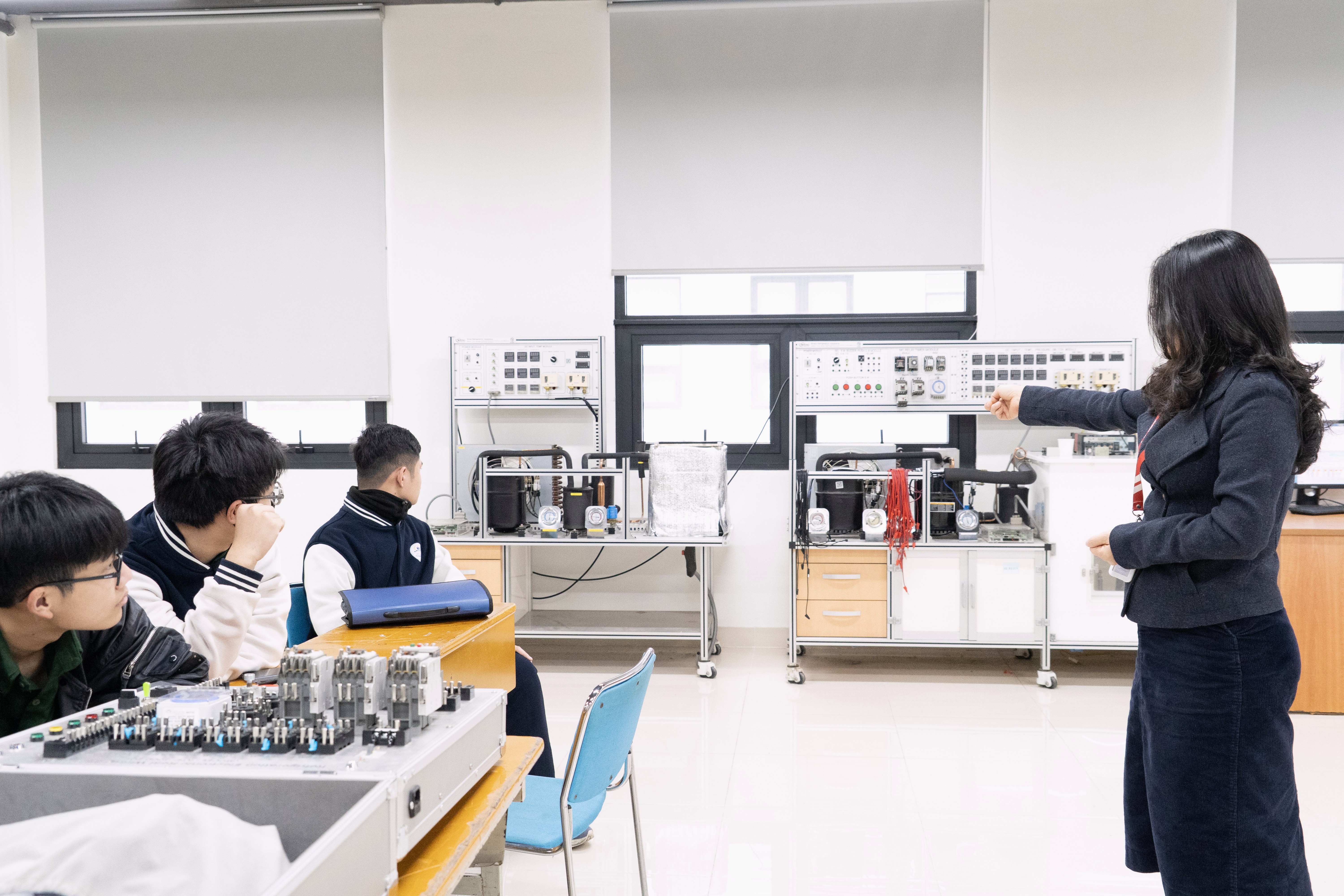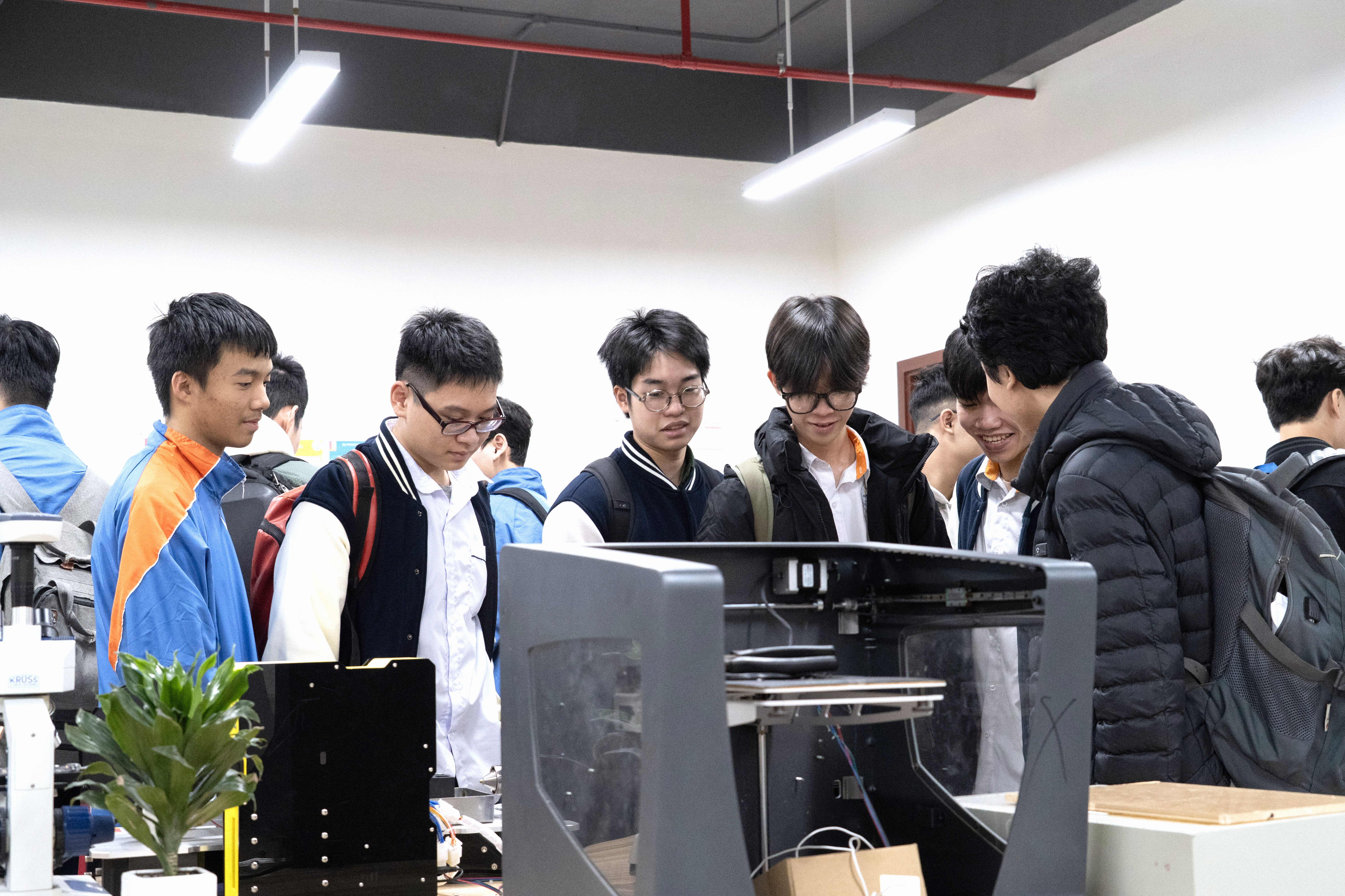 Song song với đó, học sinh khối 11 tham gia Labtour tại Trường Cơ khí. Trước khi tham quan phòng thí nghiệm, học sinh được nghe PGS.TS. Hoàng Hồng Hải - Phó Hiệu trưởng Trường Cơ khí trực tiếp chia sẻ về chương trình đào tạo và định hướng nghề nghiệp. Hoạt động Labtour đưa học sinh đến các phòng thí nghiệm in 3D và công nghệ bồi đắp, thiết kế và điều khiển hệ thống cơ điện tử, công nghệ lạnh xanh và năng lượng tái tạo, phương tiện bay thông minh. Tại mỗi điểm dừng, học sinh được quan sát, vận hành thiết bị và trao đổi cùng giảng viên và sinh viên của trường. Phần hỏi - đáp sau mỗi phòng lab giúp củng cố kiến thức và mở rộng góc nhìn về các hướng nghề nghiệp sau này.