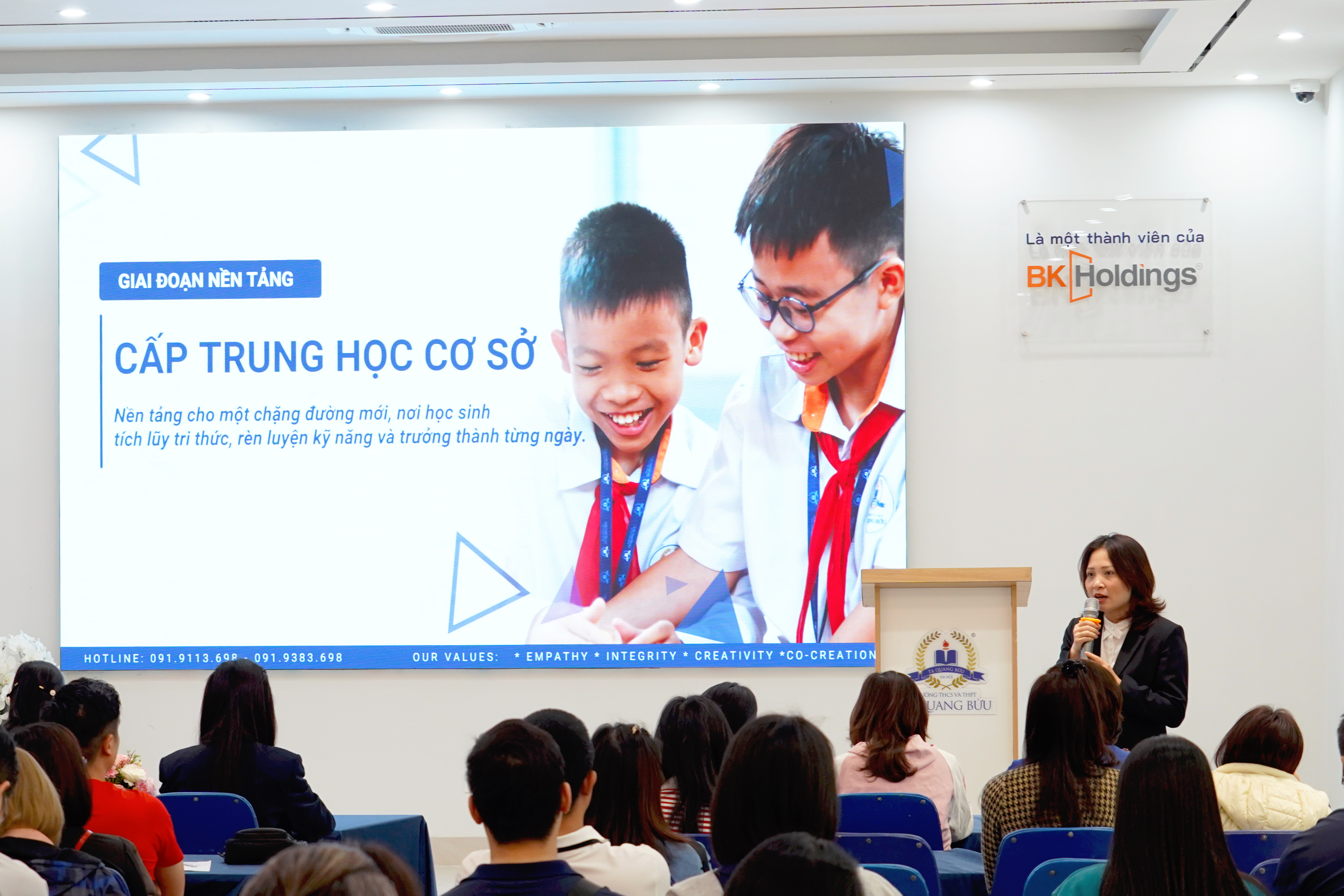 Tại hội thảo, phụ huynh được lắng nghe những thông tin từ Ban Giám hiệu và đội ngũ giáo viên về triết lý giáo dục, chương trình đào tạo bậc THCS cũng như những điểm nổi bật trong môi trường học tập tại Tạ Quang Bửu. Đây cũng là dịp để phụ huynh trao đổi trực tiếp với giáo viên, hiểu rõ hơn về định hướng giáo dục và cơ hội phát triển dành cho học sinh khi theo học tại trường.