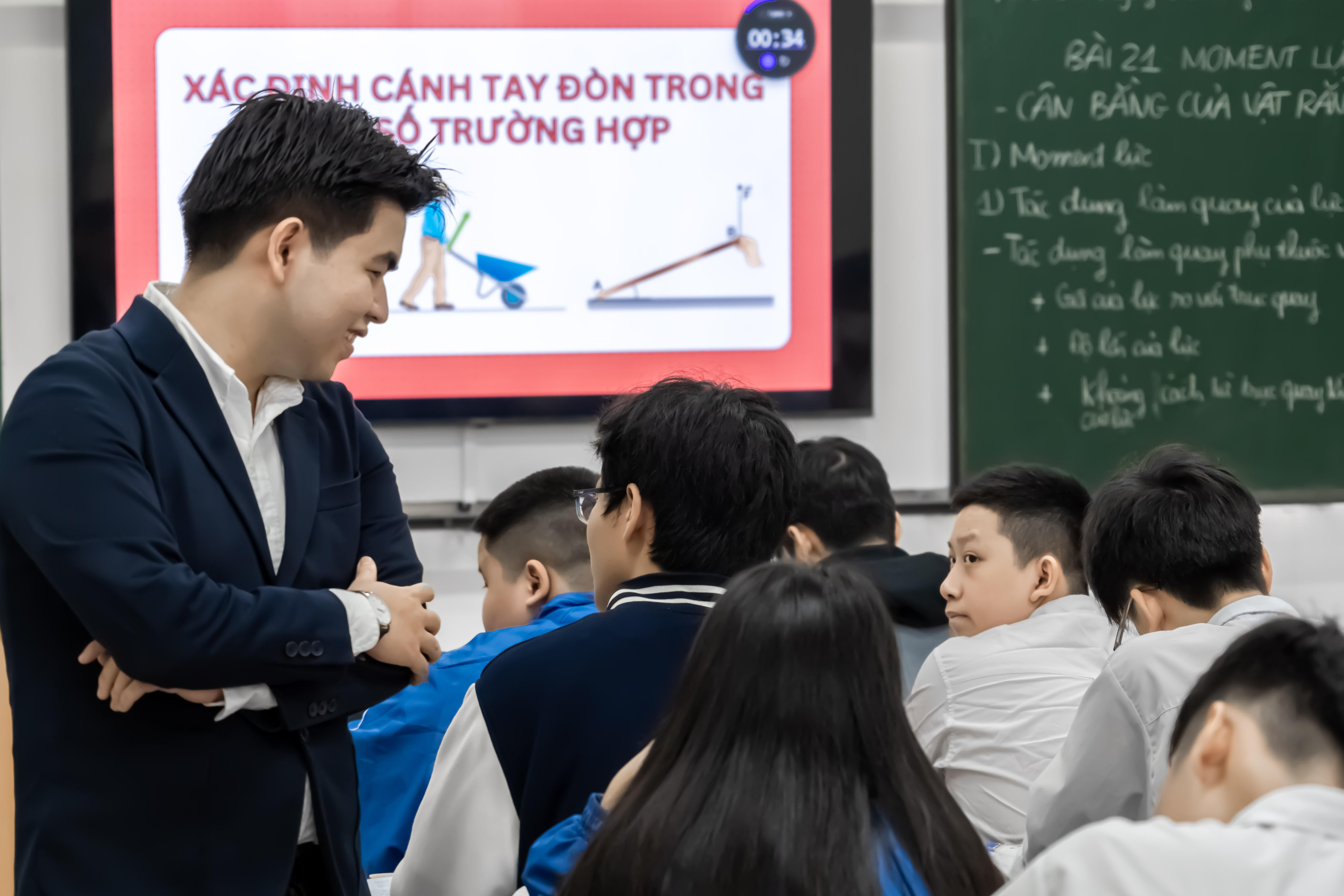 Sáng 18/11, thầy Tạ Minh Anh Tuấn đã thực hiện tiết dạy minh họa môn Vật lí bài “Moment lực – Cân bằng vật rắn” với lớp 10A3. Ngay từ đầu giờ, thầy Tuấn đã dẫn dắt học sinh tiếp cận kiến thức thông qua những hình ảnh trực quan và các ví dụ đời sống quen thuộc, giúp các em nhanh chóng kết nối với nội dung bài học.
