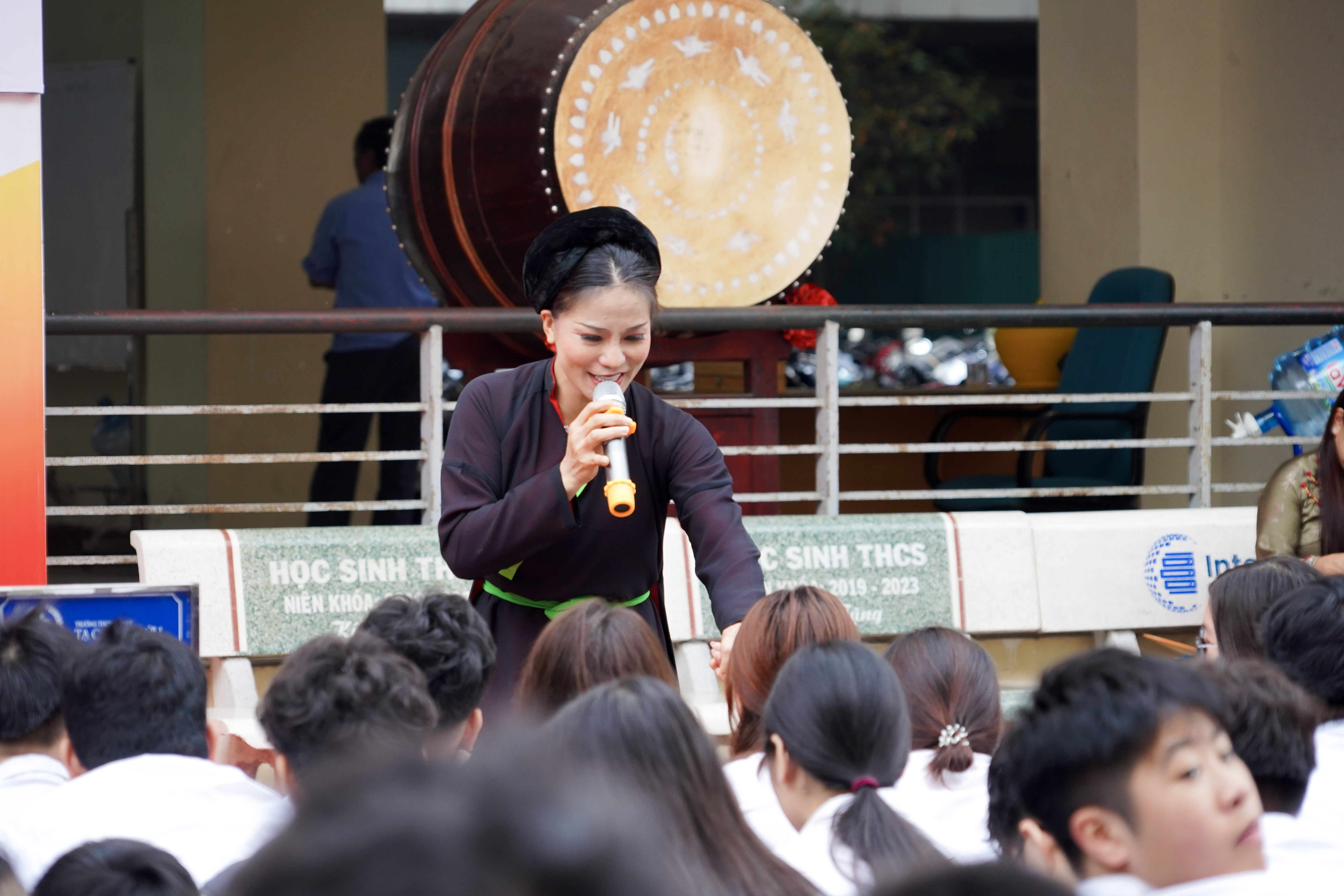 Không khí chương trình thêm phần lắng đọng với tiết mục “Yêu nhau cởi nón ra ngồi” do NS Tuấn Long trình bày. Phần giao lưu cùng học sinh đã mang đến nhiều chia sẻ chân thành, thể hiện sự hào hứng và trân trọng của các em đối với di sản văn hóa dân tộc. Chương trình khép lại với làn điệu ngọt ngào “Ngồi tựa mạn thuyền” do tốp các nghệ sĩ Quan họ biểu diễn, để lại dư âm sâu lắng và những tràng pháo tay nồng nhiệt từ thầy cô và học sinh.