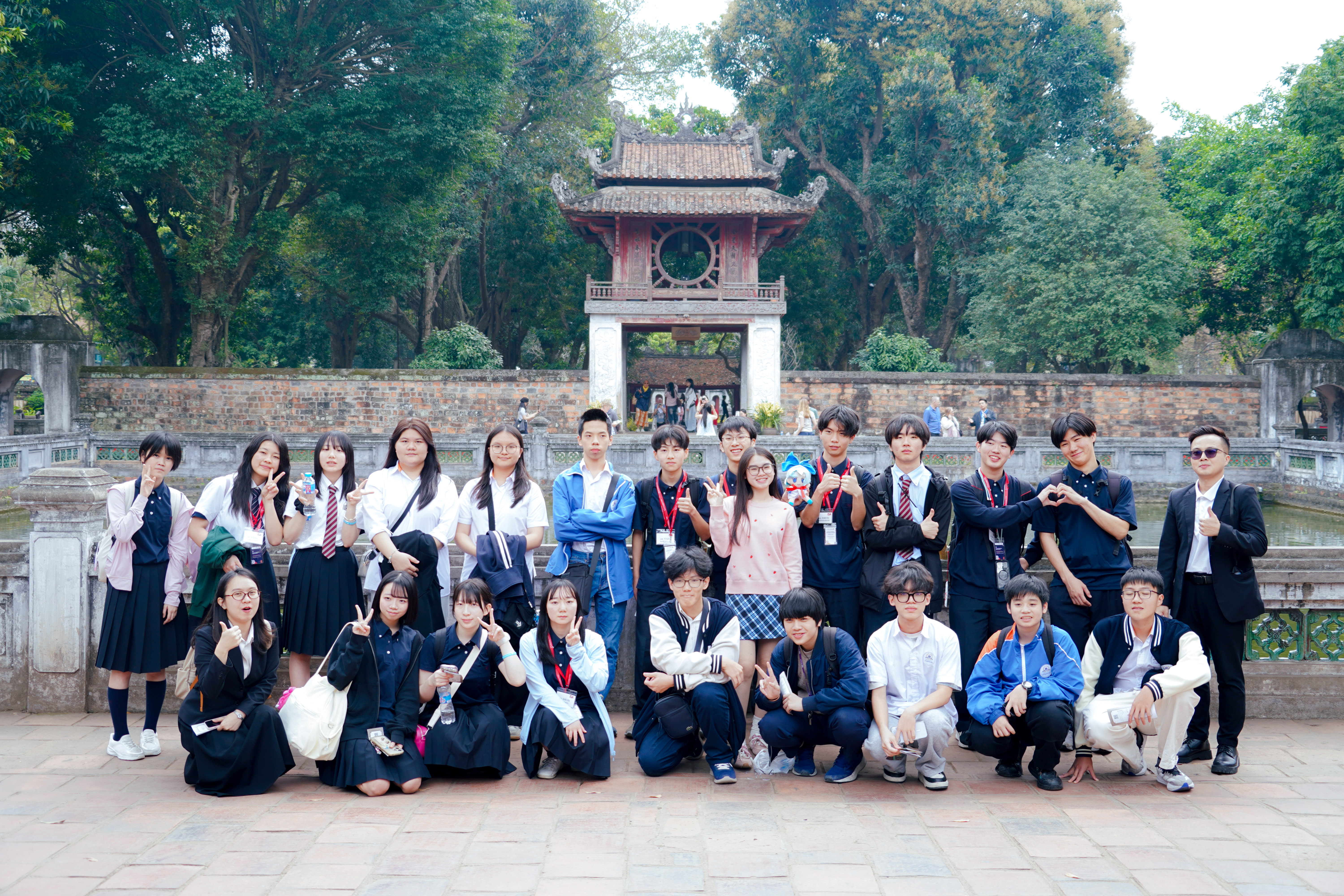 Không chỉ ấn tượng với môi trường học thuật tại Đại học Bách khoa Hà Nội, các thầy cô và học sinh đến từ Morioka Chuo còn đặc biệt thích thú khi được khám phá những địa danh văn hóa nổi tiếng của Thủ đô Hà Nội. Trong hành trình trải nghiệm, đoàn đã ghé thăm Văn Miếu - Quốc Tử Giám - biểu tượng của truyền thống hiếu học và là trường đại học đầu tiên của Việt Nam. Tại đây, các bạn học sinh Nhật Bản bày tỏ sự ngạc nhiên và thích thú khi tìm hiểu về lịch sử khoa bảng lâu đời của Việt Nam cũng như chiêm ngưỡng không gian kiến trúc cổ kính, đậm nét văn hóa Á Đông.