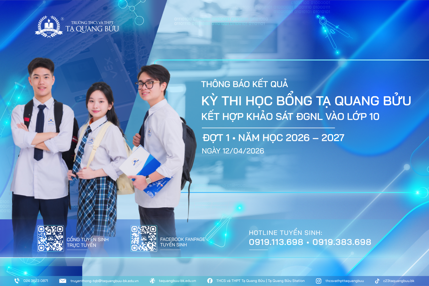 THÔNG BÁO KẾT QUẢ KỲ THI HỌC BỔNG TẠ QUANG BỬU LỚP 10