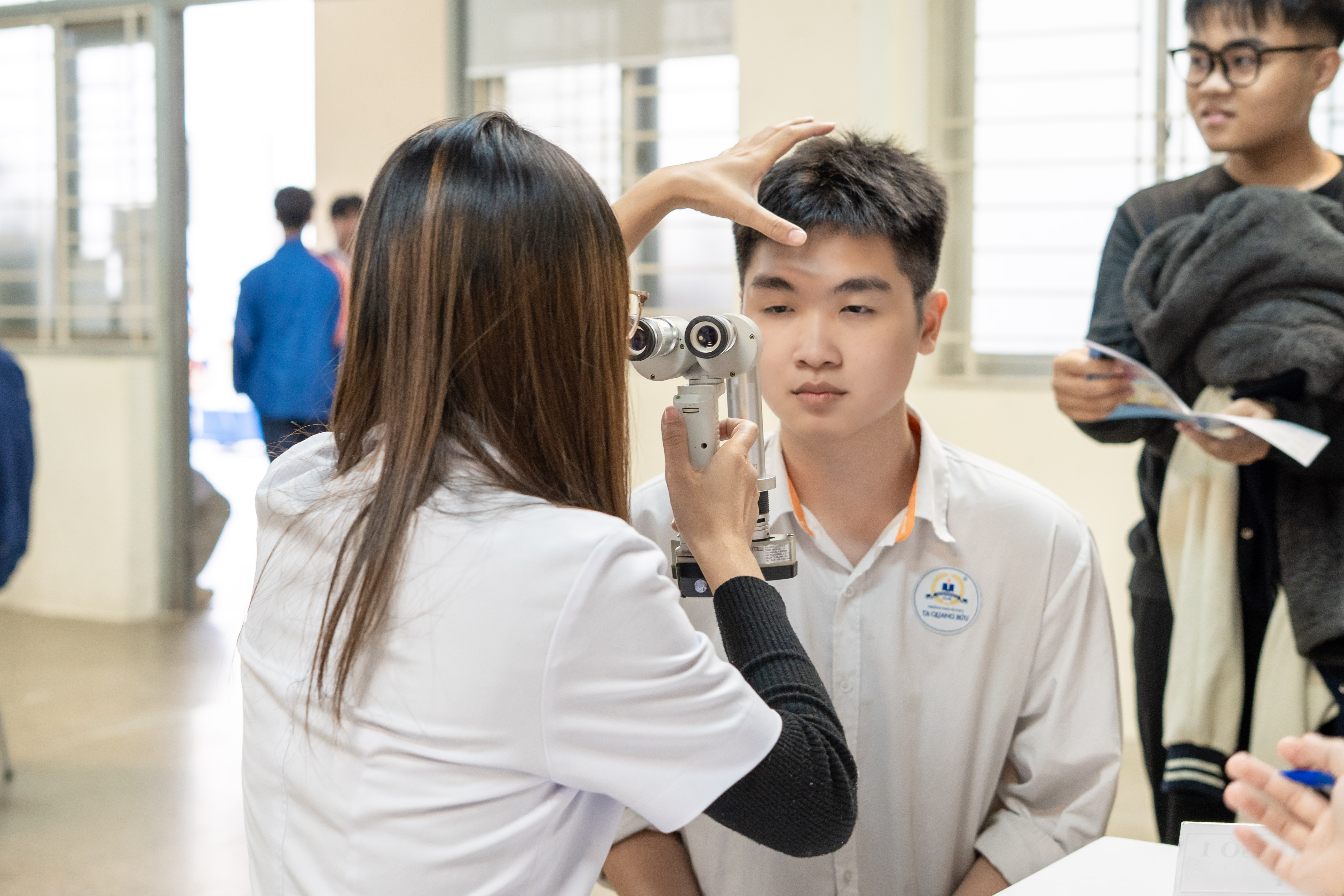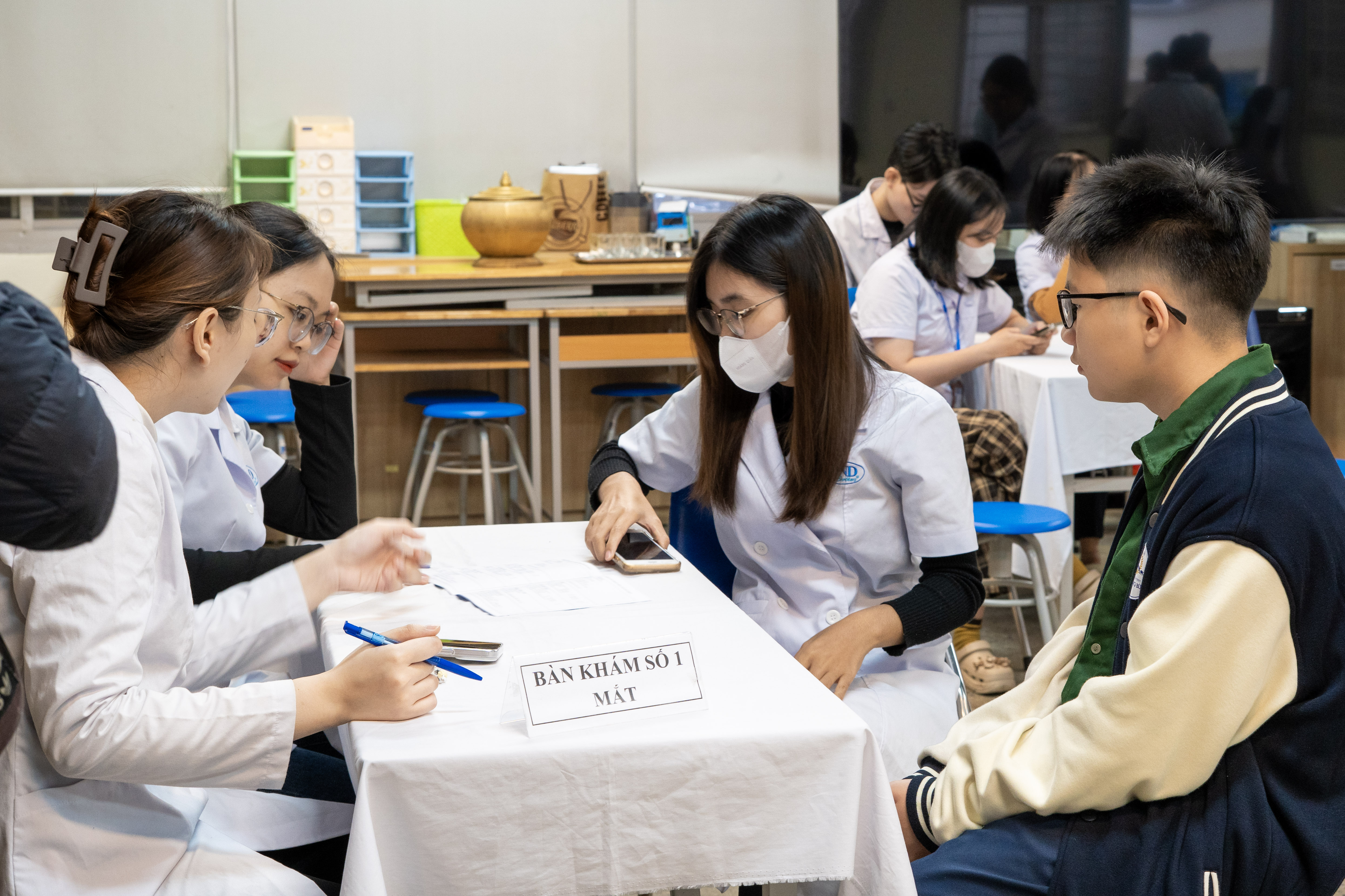 Hoạt động khám sức khỏe bao gồm kiểm tra các chỉ số BMI (chiều cao, cân nặng), tai – mũi – họng, tim mạch, tâm thần và đặc biệt là sức khỏe thị lực cho hơn 2.000 học sinh của trường.