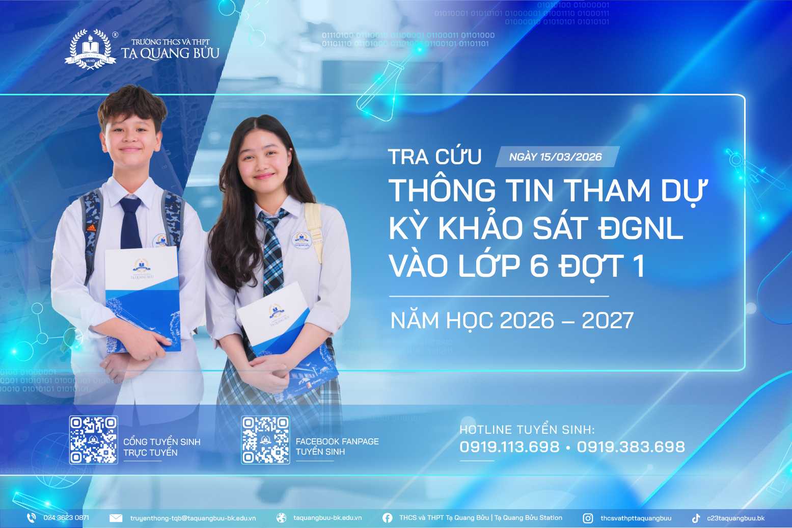 Học sinh tham dự Kỳ khảo sát Đánh giá năng lực (ĐGNL) vào lớp 6 Đợt 1 ngày 15/3/2026 đã có thể tra cứu số báo danh và các thông tin tham dự ngay trên Cổng tuyển sinh trực tuyến.