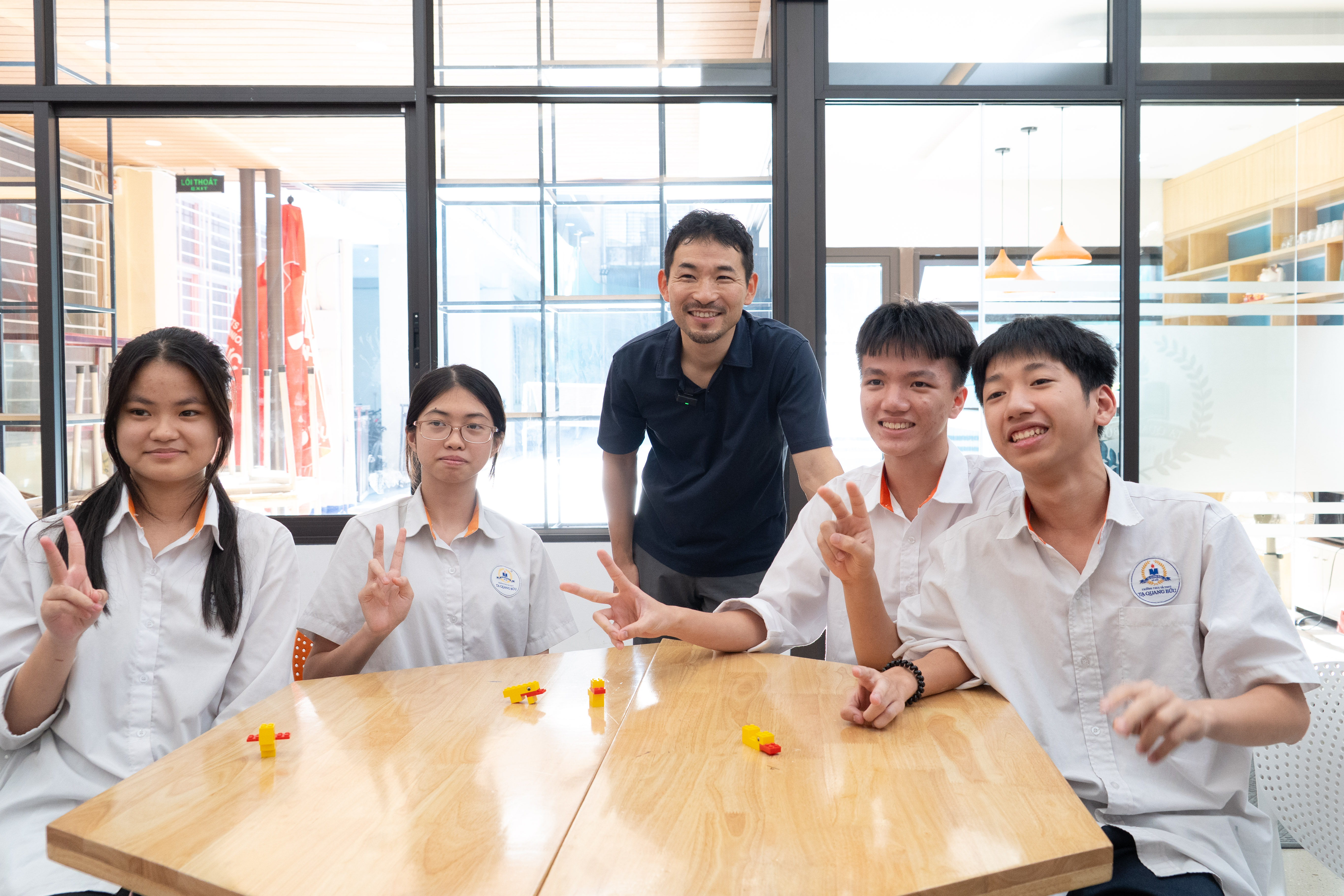Trong buổi chia sẻ, thầy Kazuya giới thiệu những kinh nghiệm học tiếng Anh thực tiễn và công nghệ Speech Analyzer – công nghệ phát hiện và phân tích phát âm mà học sinh hệ Toán – Tin của nhà trường đang trực tiếp ứng dụng. Học sinh lớp 11T1 tham gia bài học mô phỏng ngay tại sự kiện, thi đua theo nhóm để đạt điểm phát âm cao nhất, đồng thời trao đổi, đặt câu hỏi và chia sẻ trải nghiệm học tập. Những câu chuyện thành công từ học sinh Nhật Bản giúp các em hiểu rõ hơn giá trị của việc rèn luyện phát âm và giao tiếp trong học ngoại ngữ.